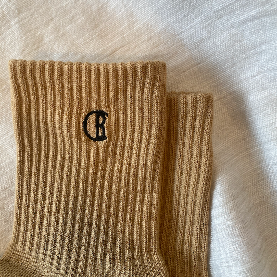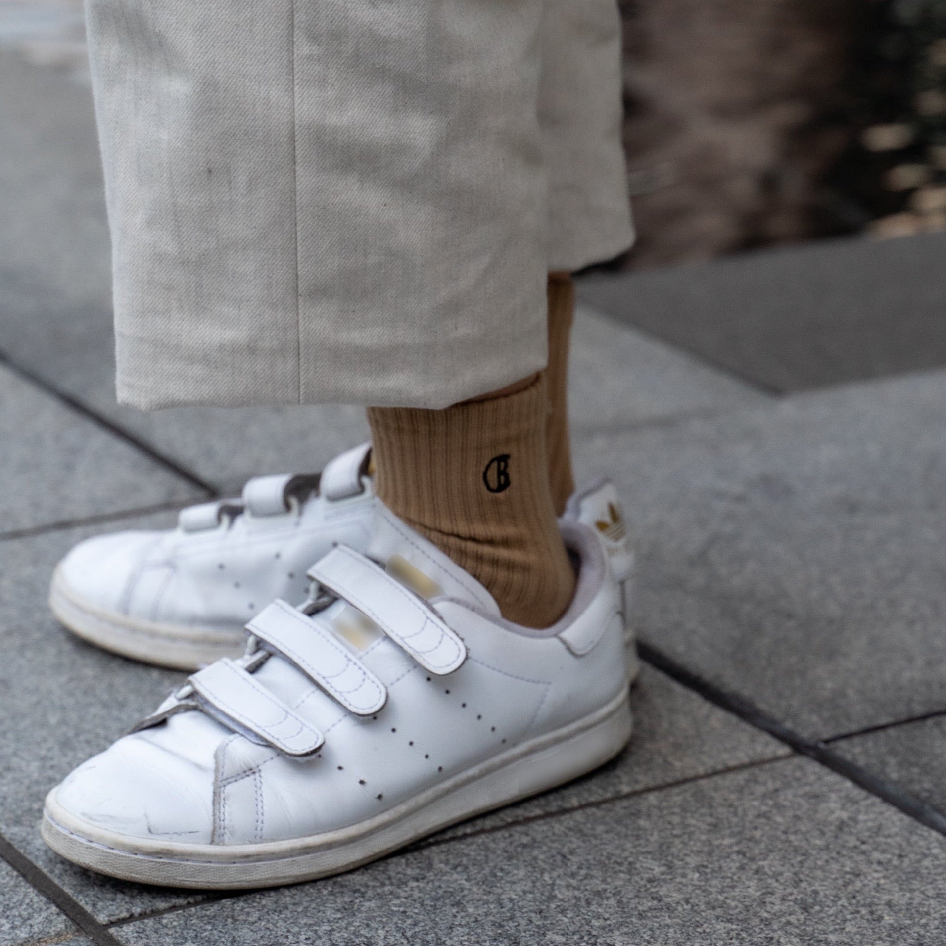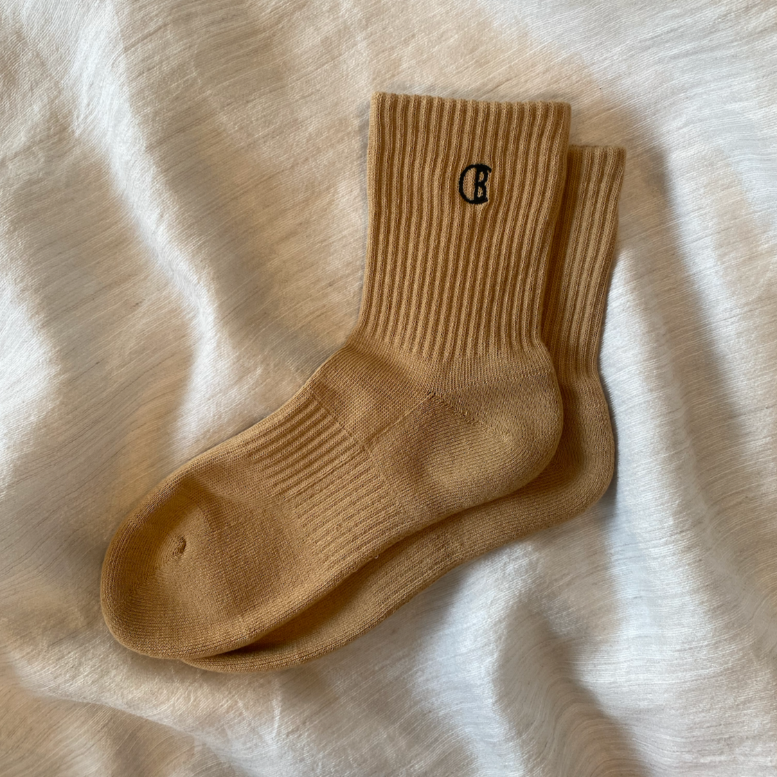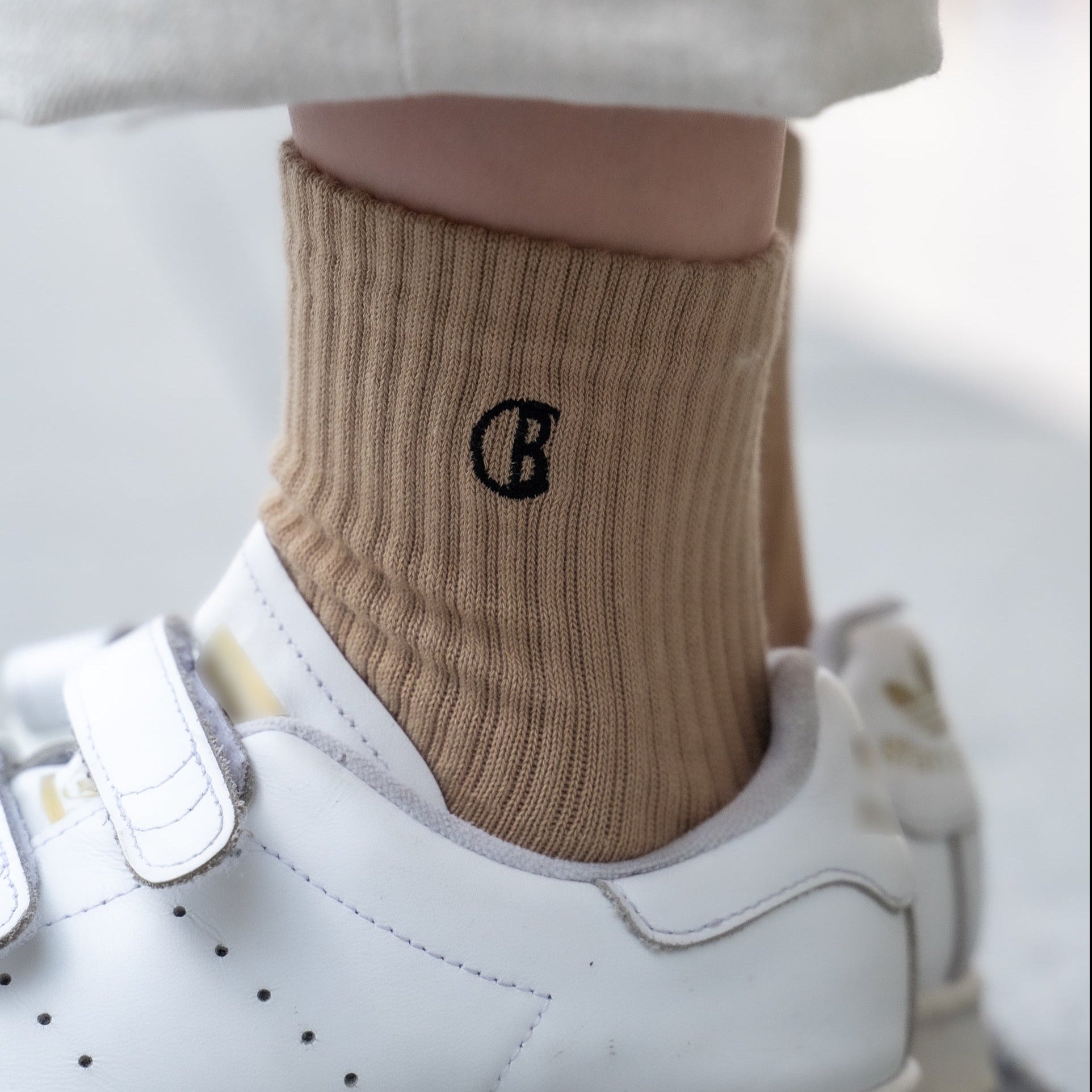 BeComme『つながる靴下』オリジナルロゴ/カーキベージュ